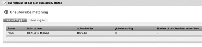 Now, buntebrause agentur starts the matching and, after having finished, it informs you about the number of the deleted subscribers. |